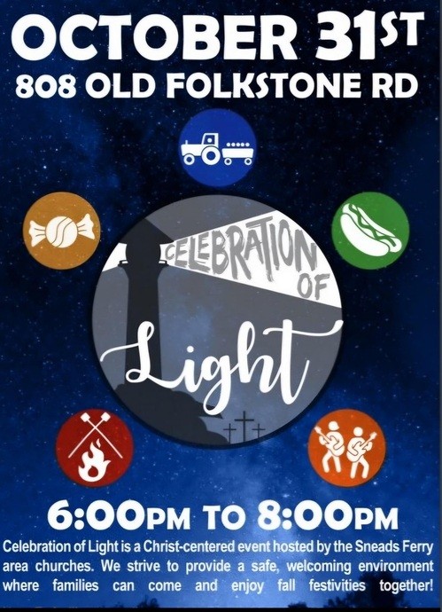 It’s a cooperative event every Halloween (Oct. 31), 6 – 8pm at North Topsail Shores Baptist Church, 808 Old Folkstone Road, Sneads Ferry, NC.